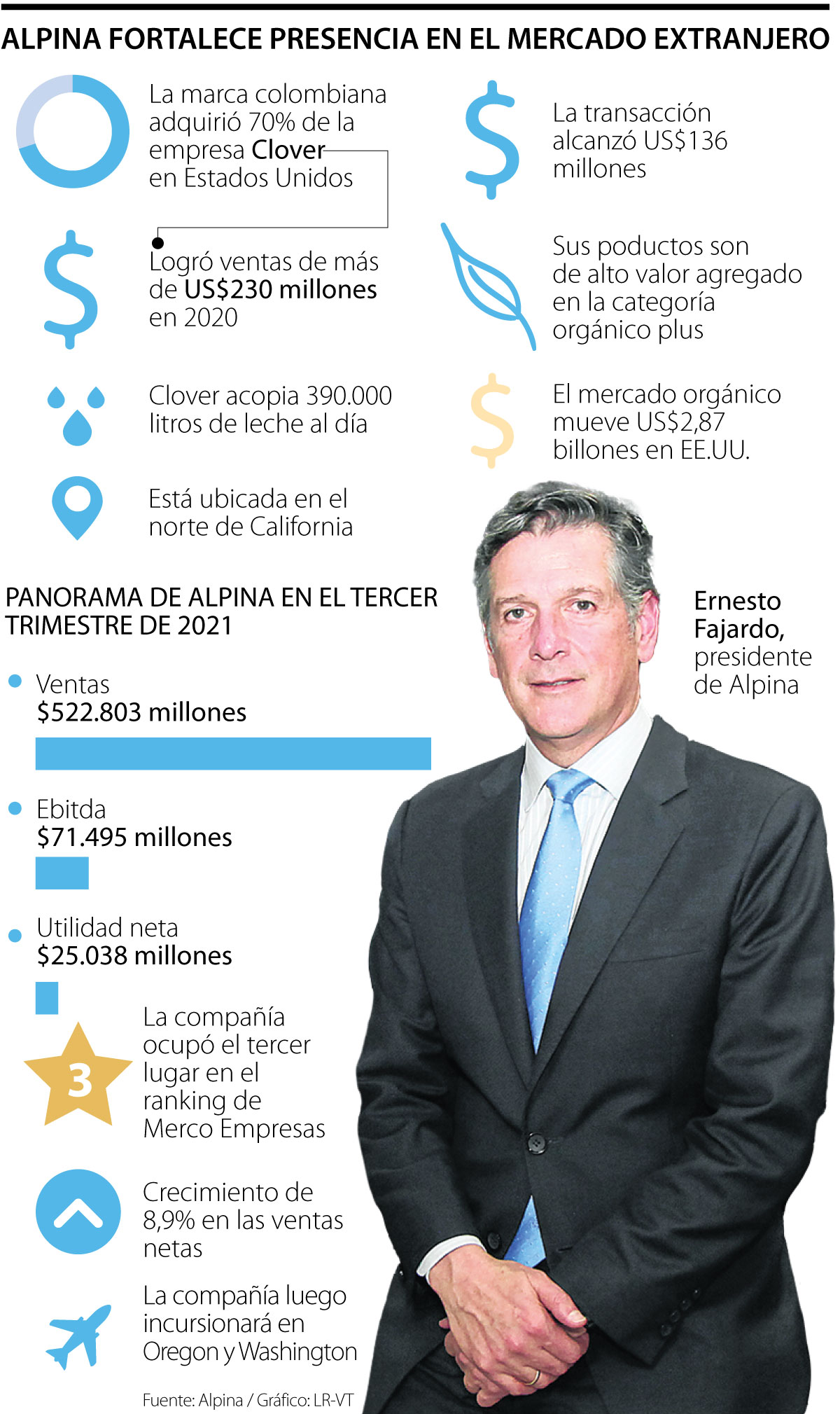 El fabricante de lácteos Alpina compró 70% de la compañía estadounidense Clover, una empresa centenaria que ha logrado reconocimiento en el mercado americano por sus productos ‘orgánicos plus’, con estándares de calidad y prácticas de ganadería sostenible.
