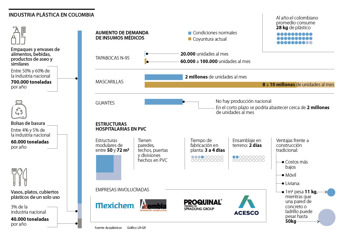 Uno de los sectores que más se ha reforzado por cuenta de la rápida difusión del Covid-19 en Colombia es el de la industria plástica, que según estimaciones de Acoplásticos, la agremiación que reúne a los integrantes del sector, ya ha registrado un incremento importante en la demanda de sus productos, especialmente en los necesarios en el mercado hospitalario.