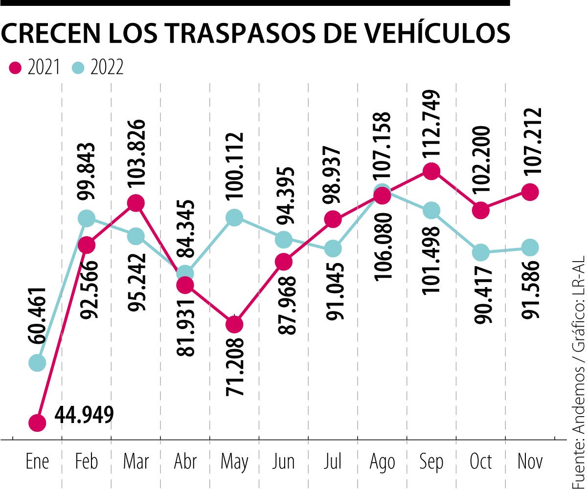 Tan solo en noviembre se hicieron 91.586 traspasos, una cifra que no superó los dos meses del año con registros récord: agosto con 107.158 traspasos, septiembre con 101.498 trámites de este tipo y mayo con una cifra de 100.112.