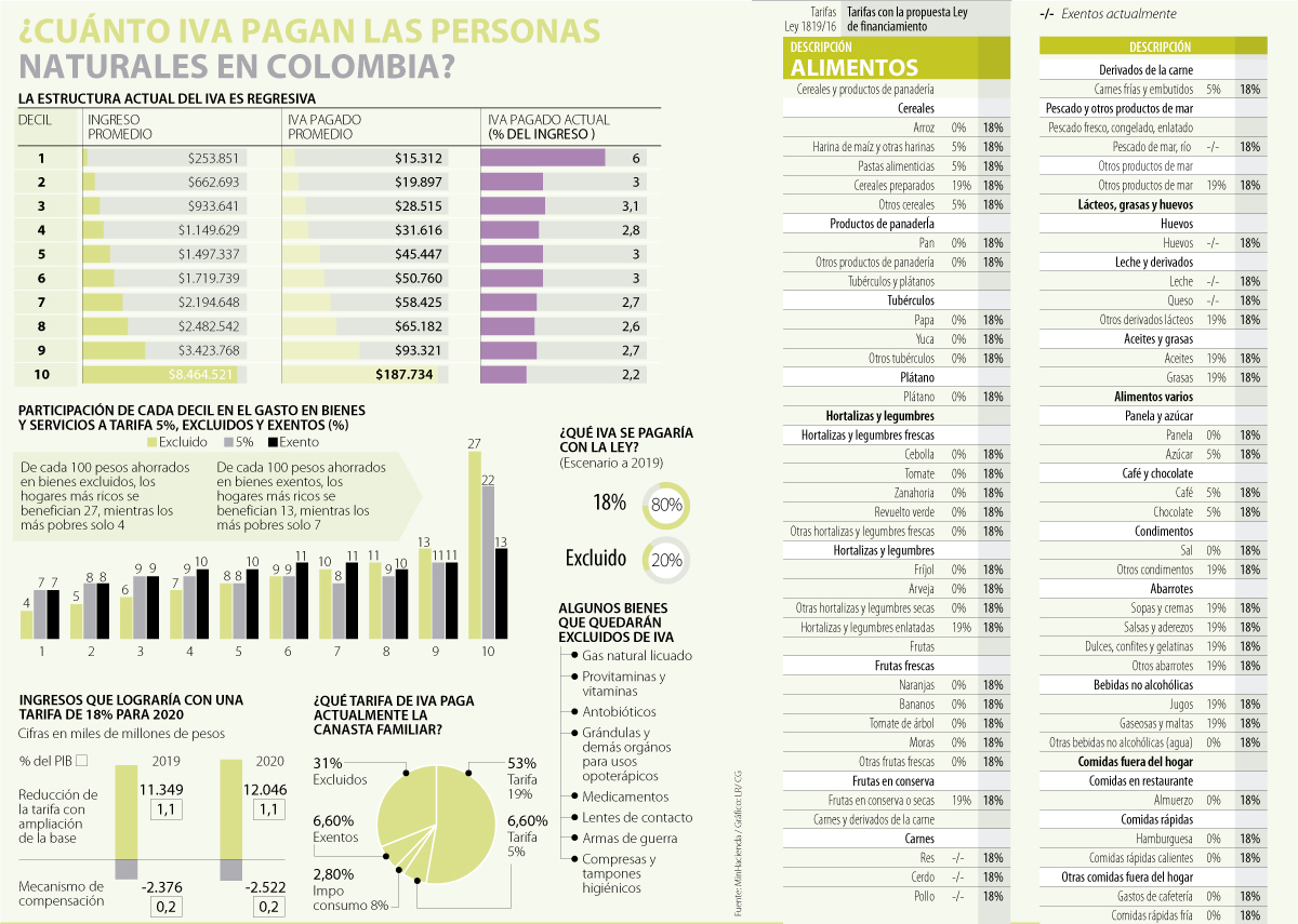 Y es que gravar alrededor de 80% de los productos de la canasta es el grueso de su proyecto y les permitiría recaudar solo en 2019 unos $11,3 billones. Recordemos que hoy solo 53% de los productos están gravados con una tarifa general de 19%.