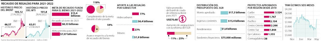 Colombia produce, aproximadamente, más de 730.000 barriles de petróleo por día (bpd), lo que se estima en una renta diaria de algo más de US$66 millones.