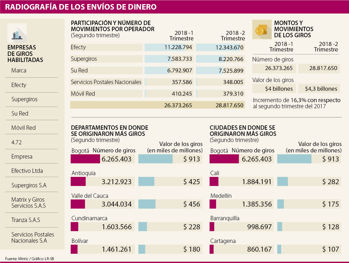 El valor de los giros movilizados para el segundo trimestre del año fue de $4,3 billones.