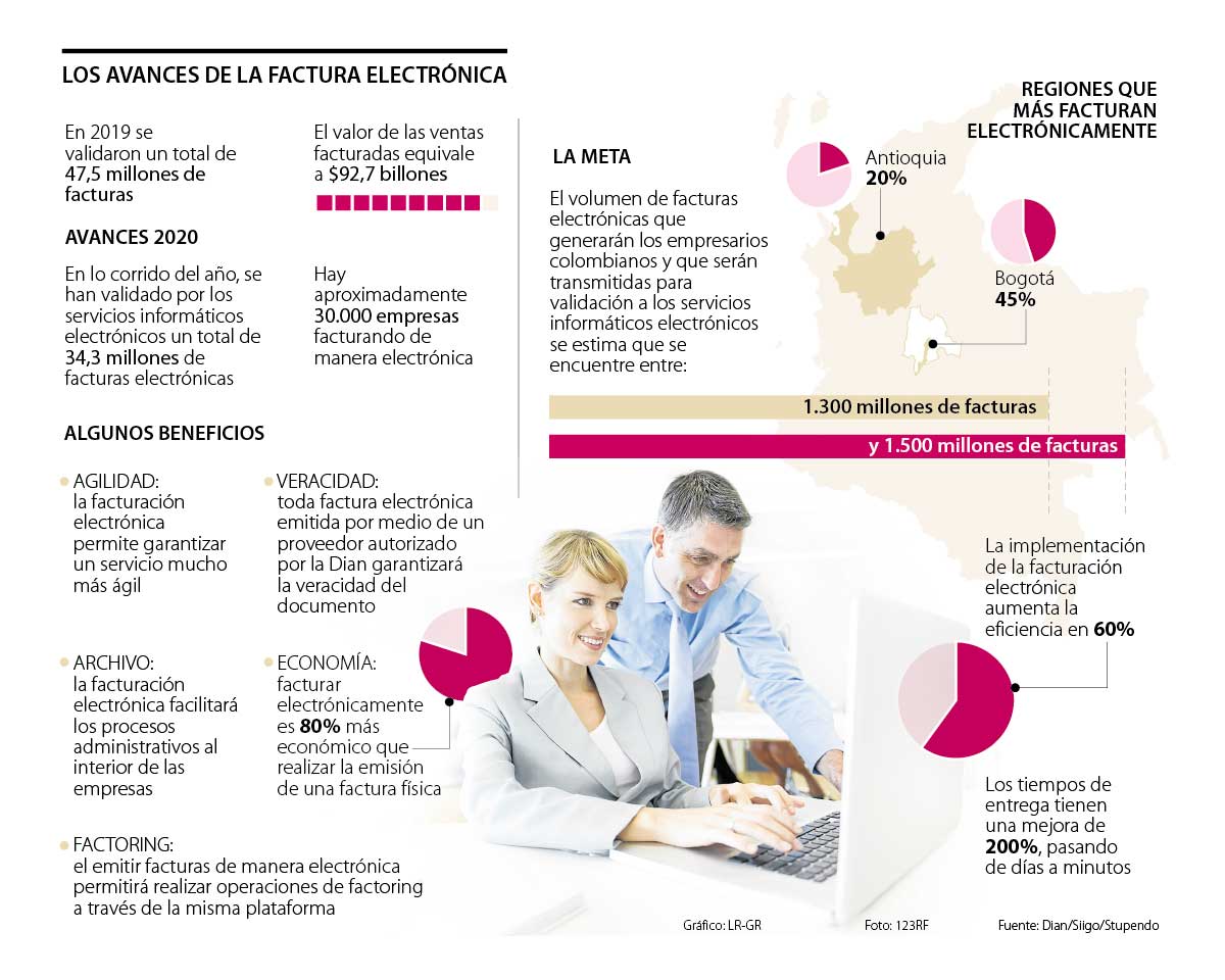 Según los últimos reportes de la Dirección de Impuestos y Aduanas Nacionales (Dian), para la versión actual de factura electrónica que se encuentra en fase de masificación, se validaron un total de 47,5 millones de documentos durante el año pasado con un monto de ventas que equivale a $92,7 billones.