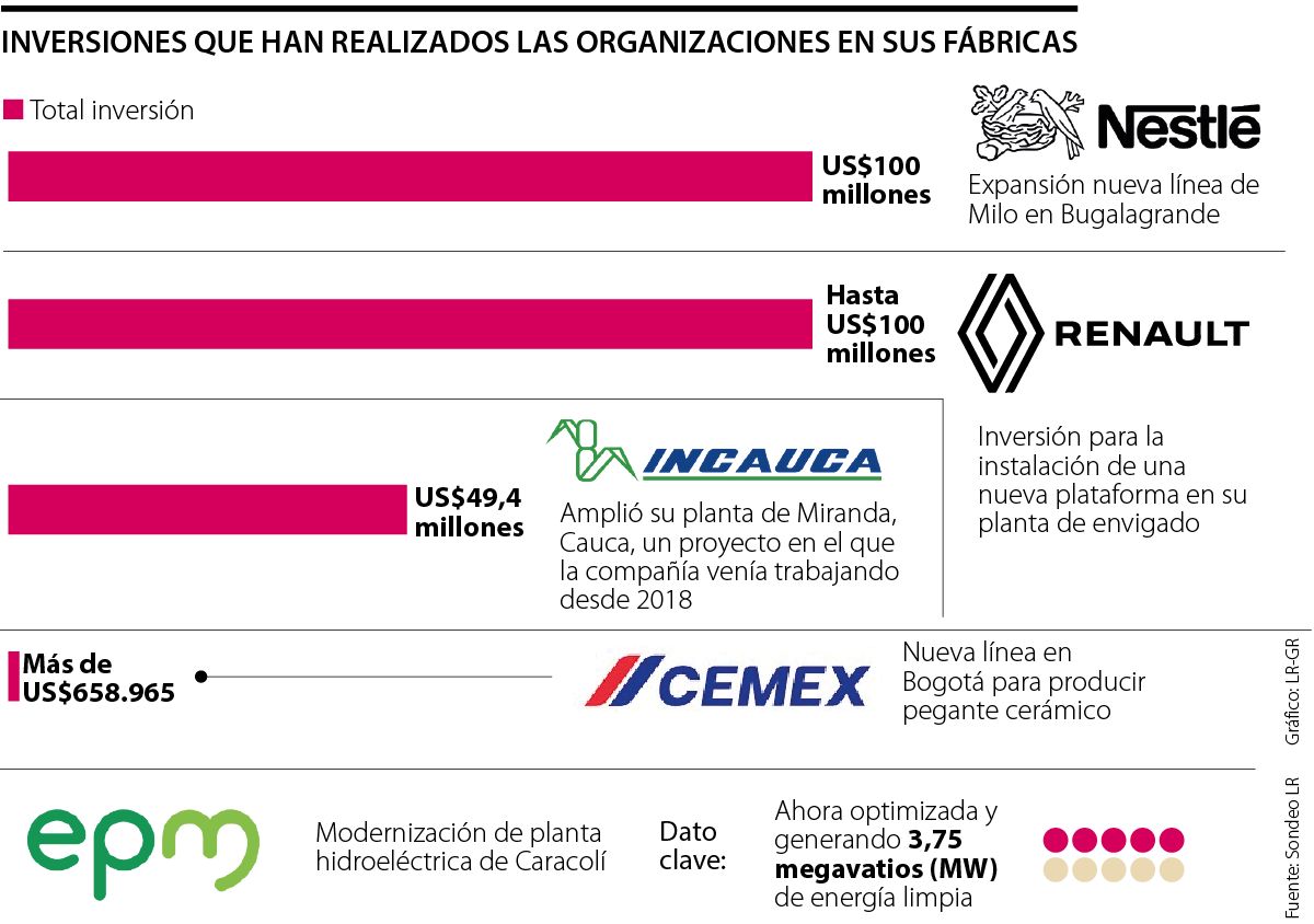 Aunque las cifras puedan apuntar hacia un lado contrario, las grandes empresas le siguen apostando a la economía local. Hasta el momento, varias organizaciones han realizado o anunciado inversiones para la expansión o construcción de nuevas fábricas, lo que representa un voto de confianza para los colombianos.