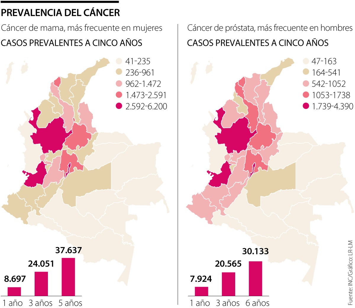 Por ejemplo, el cáncer de mama tiene una prevalencia mayor en Antioquia y en Valle de Cauca, zonas en las que se llegaron a registrar 6.200 casos en cinco años.