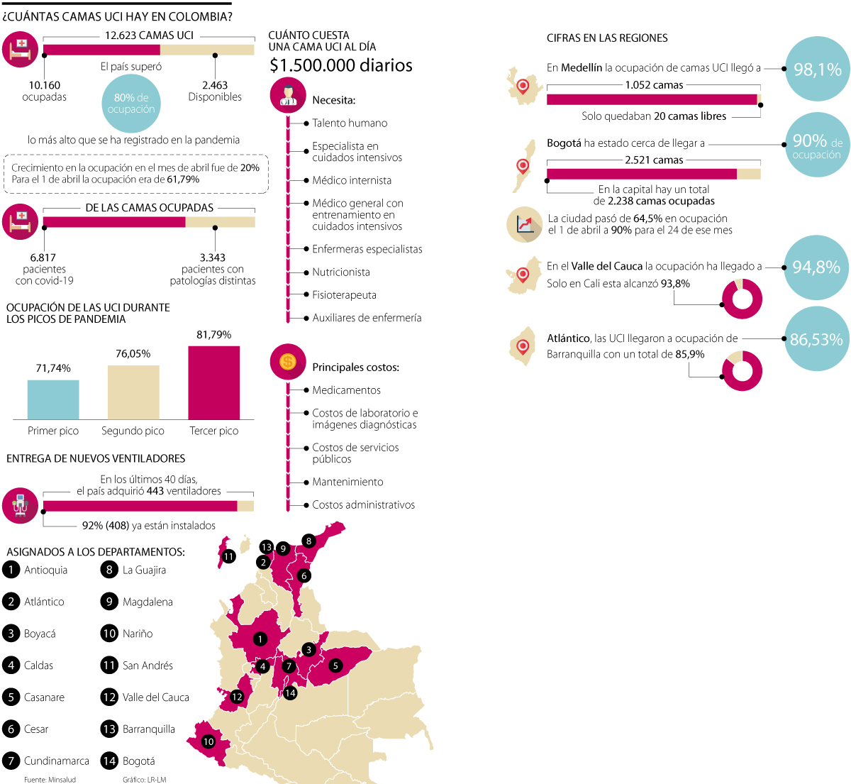 Luego de tres picos de pandemia, en Colombia las camas UCI se han vuelto uno de los indicadores más importantes del sector. Actualmente, según información del Ministerio de Salud, el país cuenta con 12.623 espacios para la atención de pacientes críticos de covid-19.