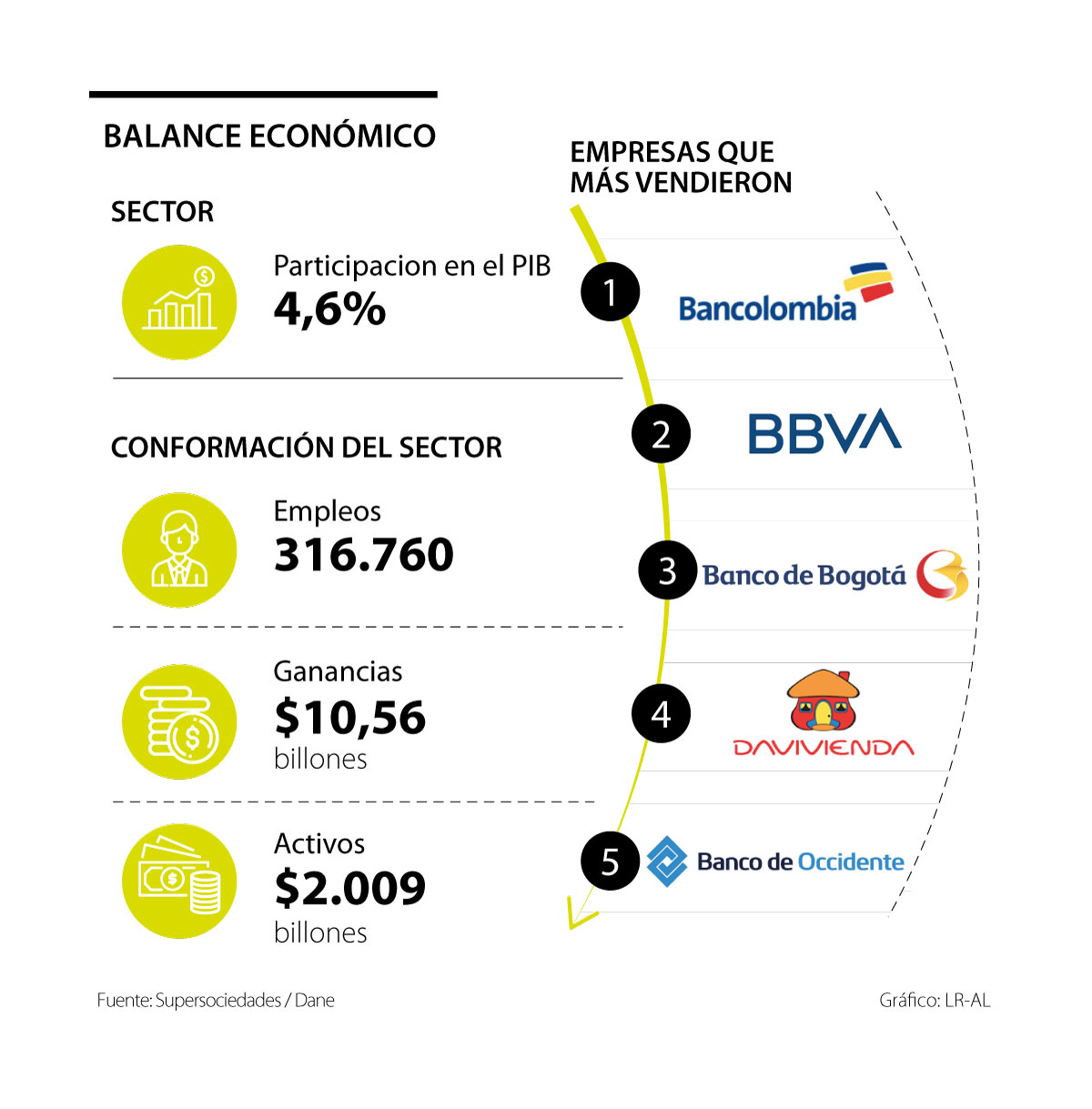 En el ranking de este sector, que generó 316.760 empleos en 2019, le sigue el banco español Bbva, que reportó ganancias por $738.369 millones. Luego continúan Banco de Occidente, con $457.781 millones; Citibank, con $339.416 millones; Banco Popular, con $328.580 millones; GNB Sudameris, con $250.043 millones; Banco Caja Social, con $248.478 millones; y AV Villas, con $190.710 millones.