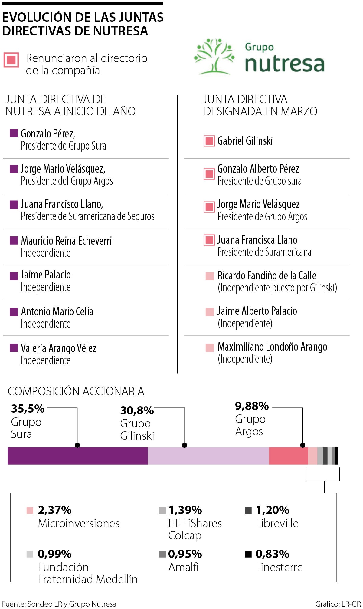 Con la salida de Gabriel Gilinski de la Junta Directiva de Nutresa, el Grupo Gilinski se sumó a la avalancha de renuncias de los cacaos del Grupo Empresarial Antioqueño (GEA) a los órganos directivos de las principales compañías del conglomerado: Sura, Nutresa y Argos. Bajo este panorama, desaparecerían las inhabilidades presentadas por lo órganos administradores a la hora de tomar decisiones como la participación en las OPA radicadas por el empresario caleño y, por primera vez en la historia, la multilatina de alimentos se distanciaría de las otras compañías, cobrando mayor autonomía y dejando, relativamente, la concentración de poder.