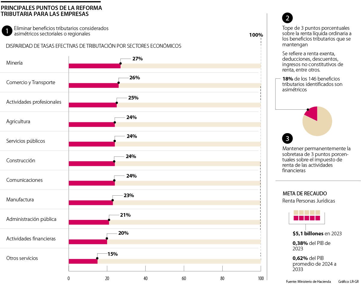 Entre las principales reformas está mantener la sobretasa de 3% para instituciones financieras y la renta de 35% para las sociedades