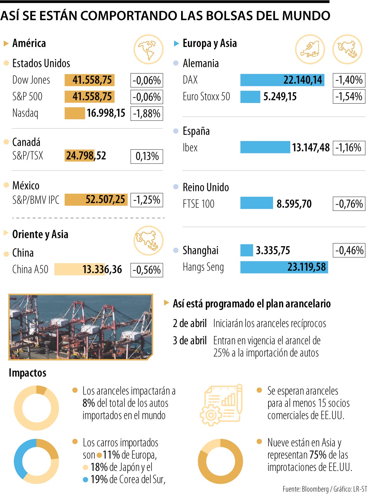 A la 1:11 pm ET, el Promedio Industrial Dow Jones cayó 659,20 puntos, o 1,54%, a 42.139,77, el S&P 500 perdió 147,97 puntos, o 2,56%, a 5.622,23 y el Nasdaq Composite perdió 740,45 puntos, o 4,07%, a 17.455,77.