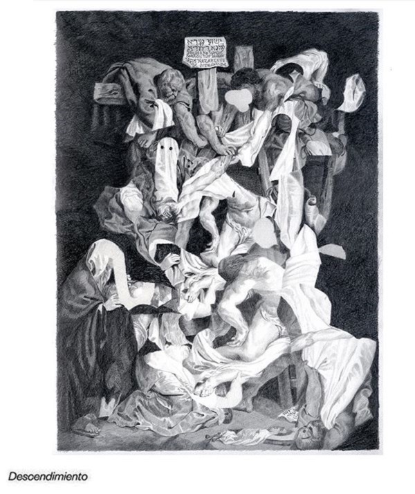 Obra realizada para el Mambo basándose en el descendimiento de la cruz, escena que en el contexto de la pandemia representa el drama y desmoronamiento. Es uno de los artistas que más ha vendido en galerías de la Agac (Asociación de Galerías de Arte Colombianas) y su obras pueden alcanzar los $5 millones.