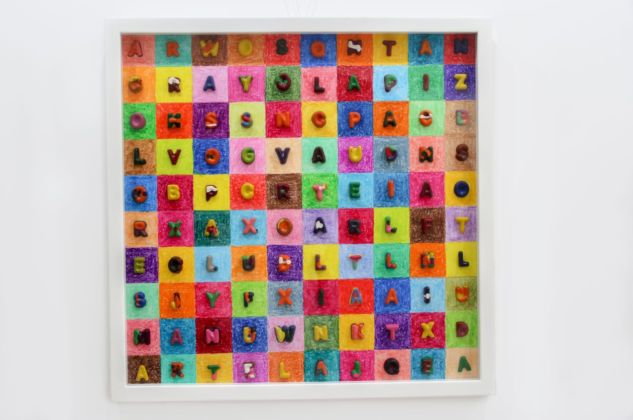 Obra de la serie ‘Crecer sin perder la niñez’ de 2019. Trabajo artístico de la artista egresada de la Universidad Javeriana, Puerta Padilla, quien con este trabajo de 2019, se enfoca en la niñez y el crecimiento, mientras utiliza materiales poco convencionales, como crayolas que derrite para crear diferentes texturas.