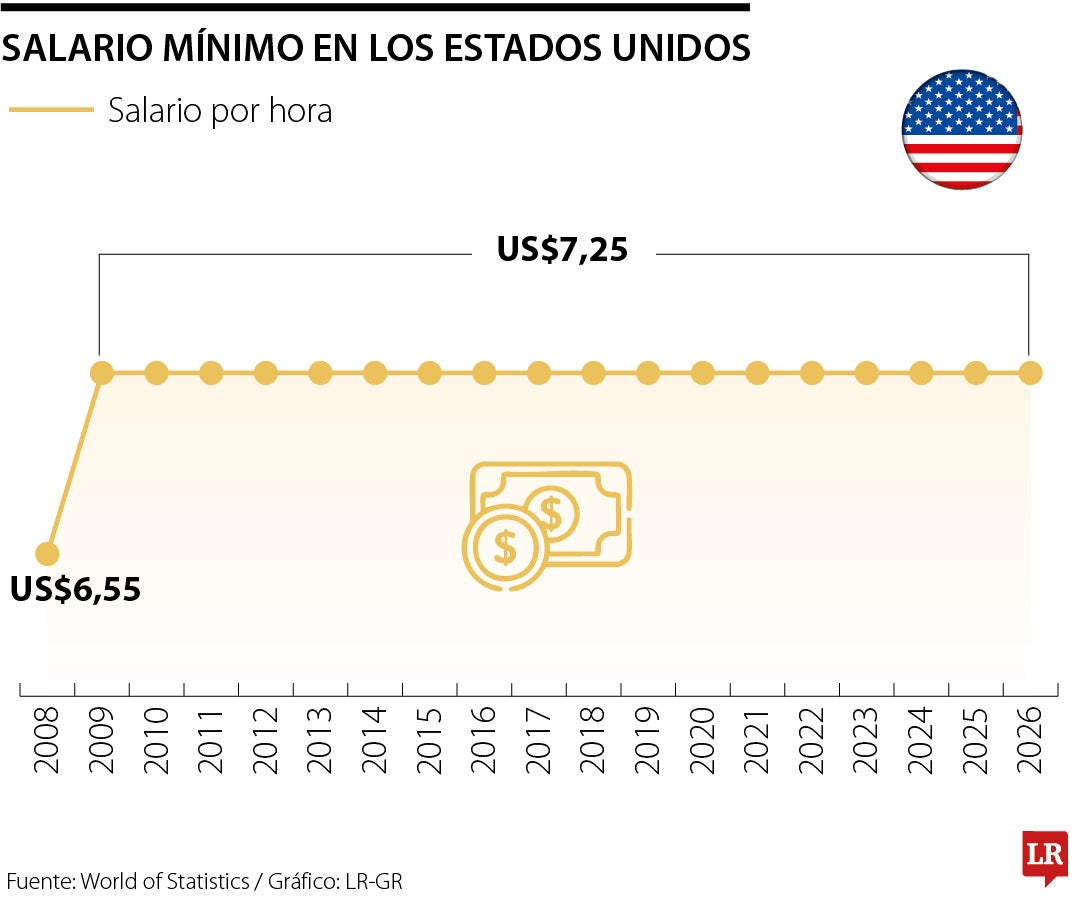En los Estados Unidos se cotiza la hora trabajada a US$7,25 desde hace 17 años y en Colombia para este año llegó hasta los $2 millones un salario mínimo