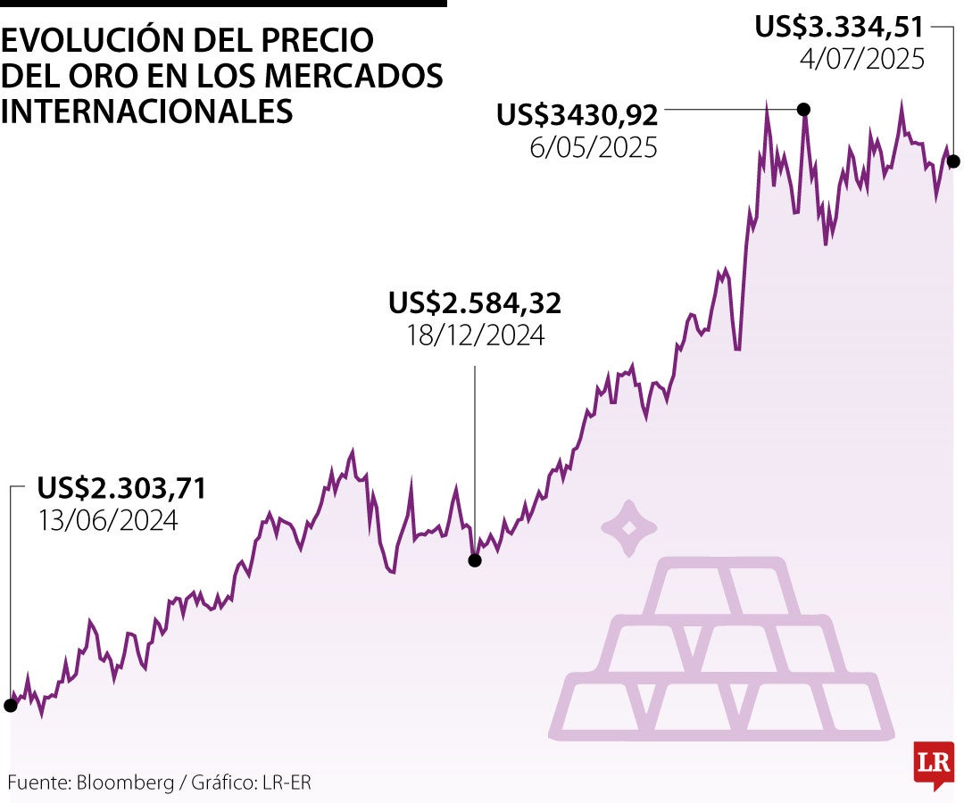 En lo que va de año, ha subido 25% alcanzando los US$3.300 la onza gracias a la incertidumbre generada por los conflictos bélicos, las tasas de interés y el baile de los aranceles