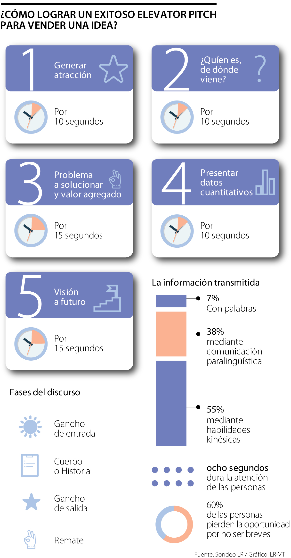En esa misma vía, plantea una serie de ‘tips’ para construir su ‘elevator pitch’ y así lograr vender lo que sea en un periodo no superior a tres minutos.