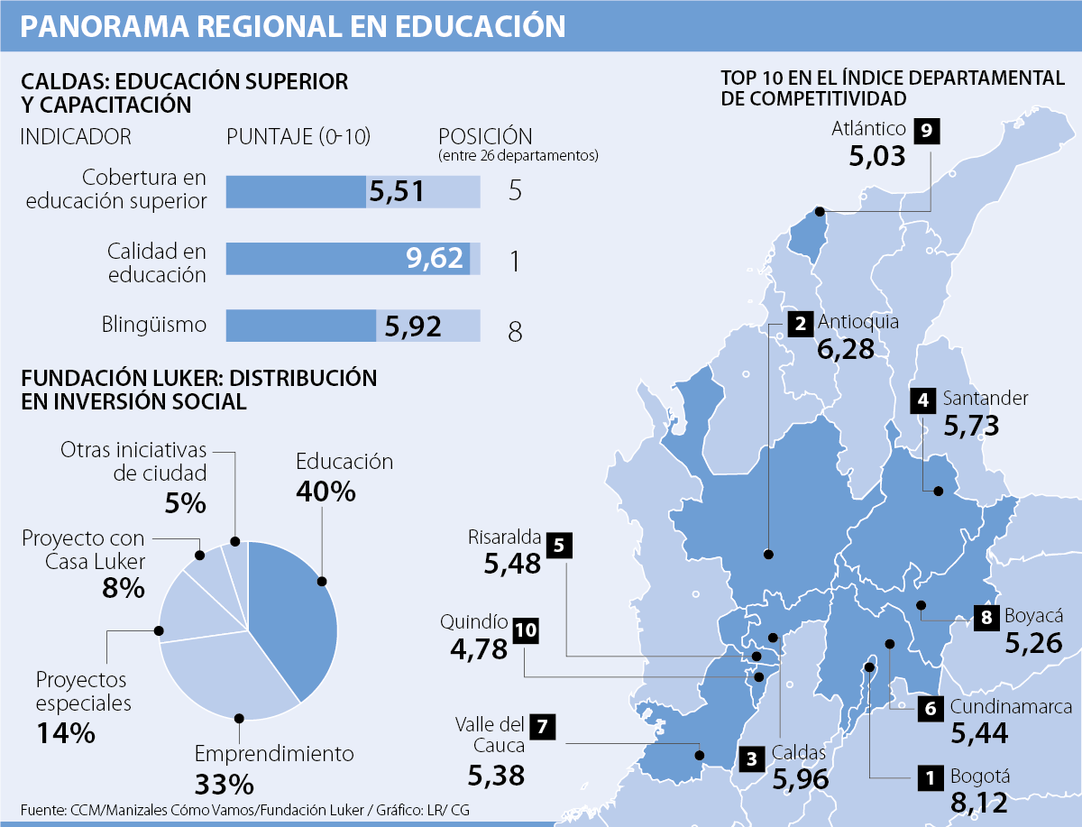 En cuanto a los logros en educación superior, la Alcaldía de Manizales y la Secretaría de Educación, con el apoyo de la Fundación Luker, han hecho esfuerzos para vincular a los estudiantes a la superior.