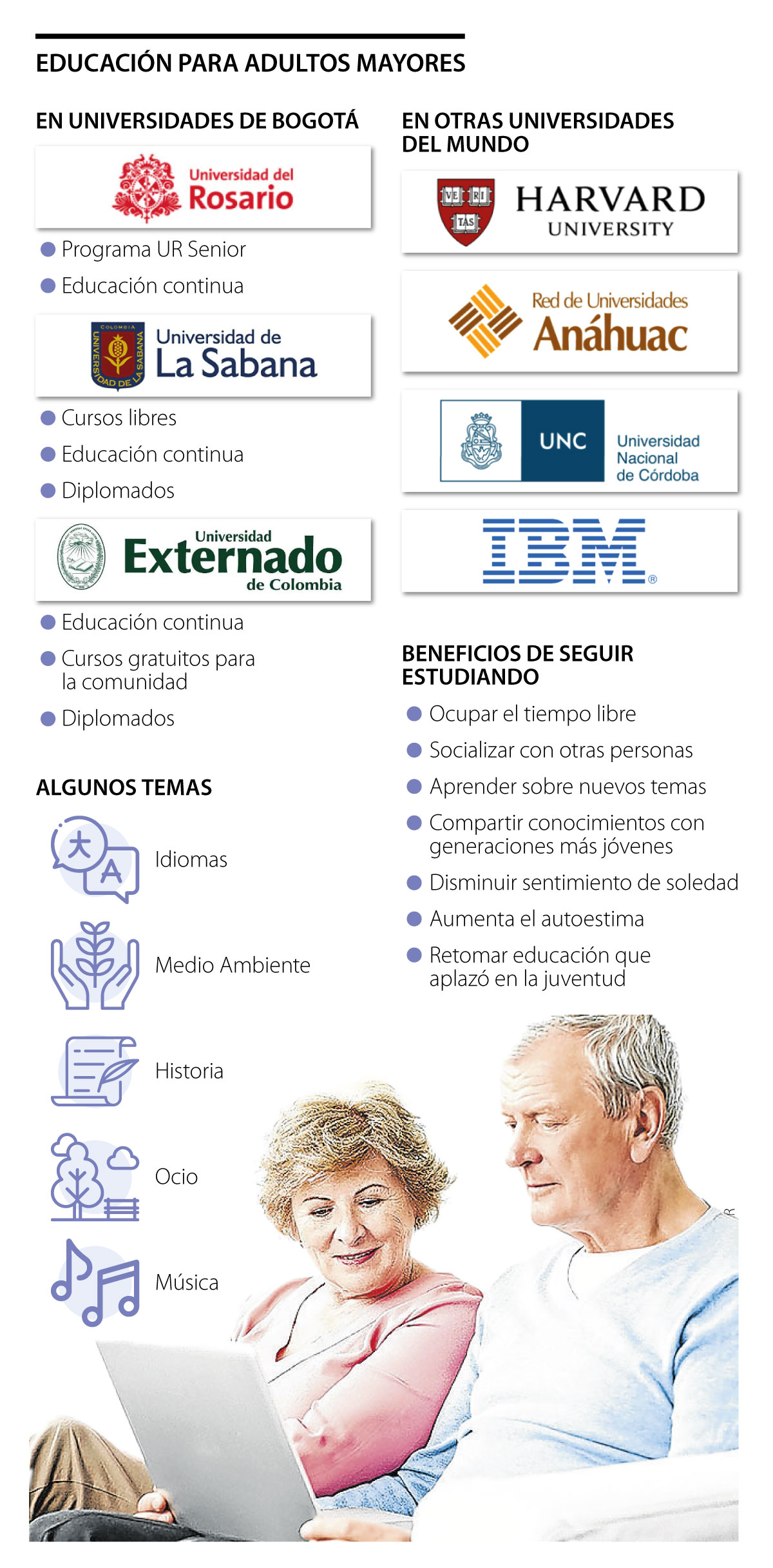 En Bogotá, por ejemplo, la Universidad del Rosario lanzó un programa especial llamado UR Senior ‘más por contar, más por vivir’, con el que pretenden vincular a los adultos mayores a programas de educación con los que desarrollen una vida más activa y productiva.