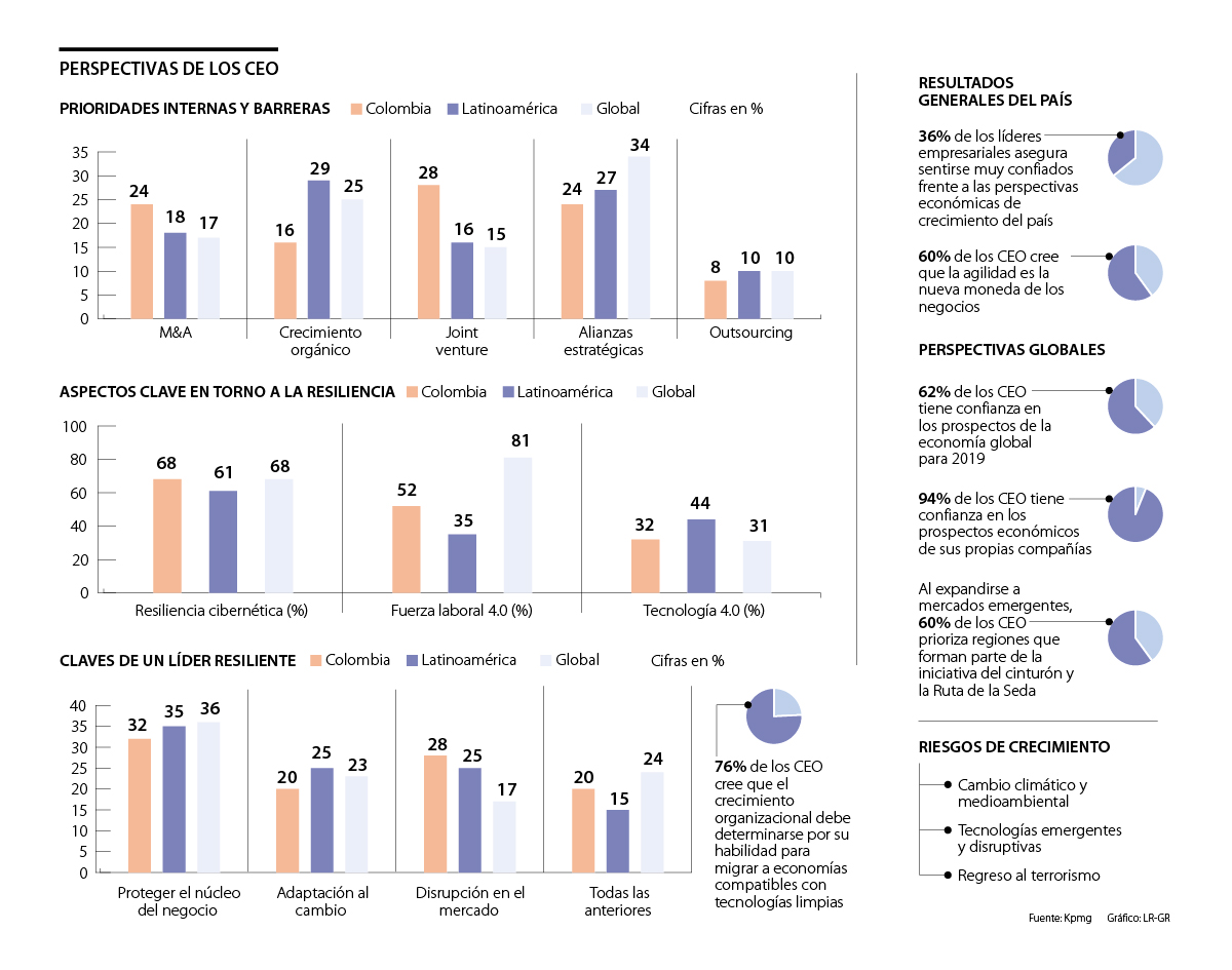 “Los CEO deben ser muy ágiles para ser exitosos. En un mundo de volatilidad e incertidumbre se requieren diferentes habilidades de liderazgo, particularmente en organizaciones grandes y multinacionales”, destacó el presidente de Kpmg en Colombia, Jorge Ríos.