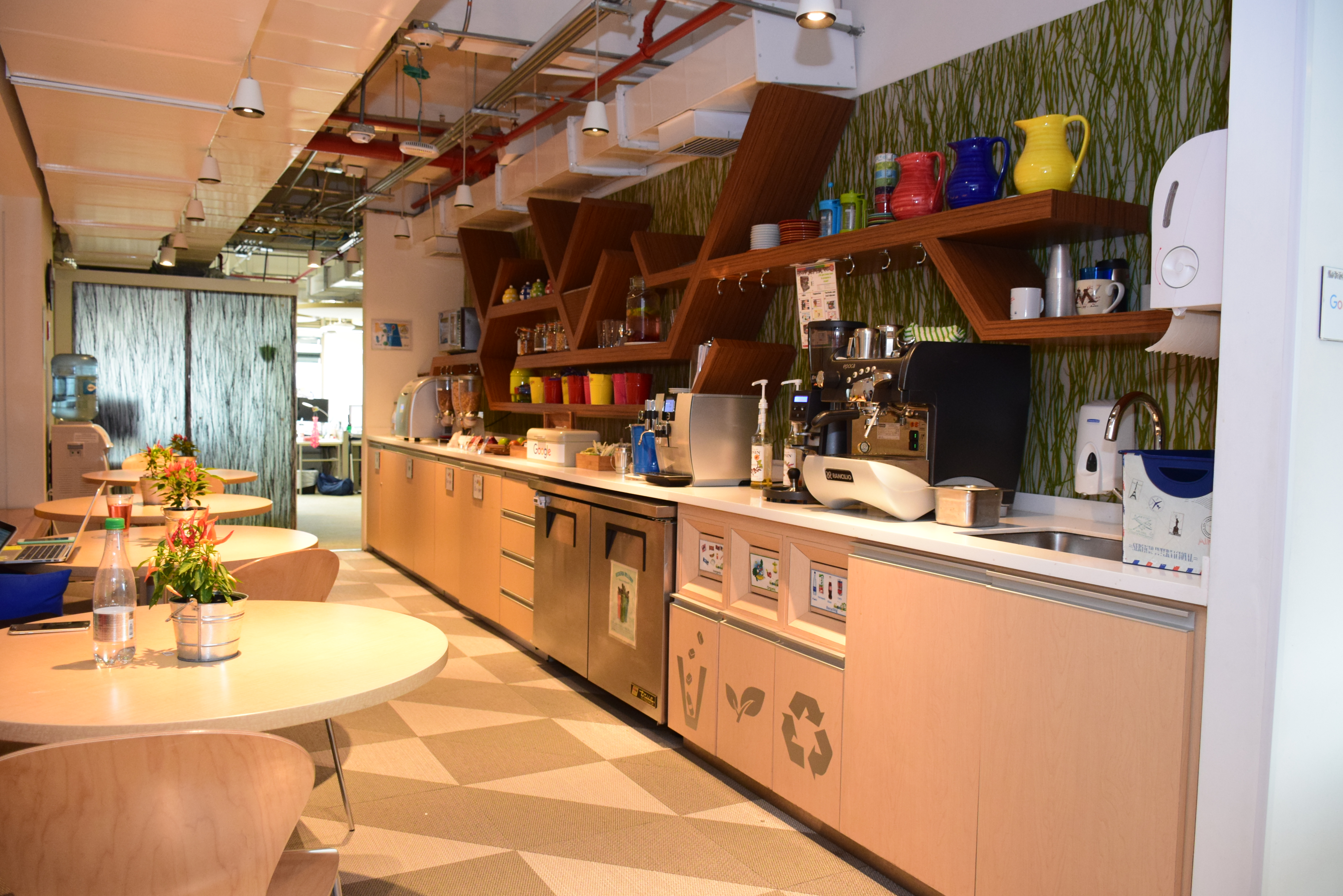 Uno de los espacios mejor dotados: tienen chef que prepara comida saludable; micrococinas o espacios cercanos a las personas con alimentos 24/7; gimnasio que siempre está abierto, a veces horarios con clases de yoga, boxeo, etc; para las mamás, sala de lactancia y espacio para bebés; oficinas dog friendly; salas de videojuegos; billar o ping pong; y zonas de siesta.