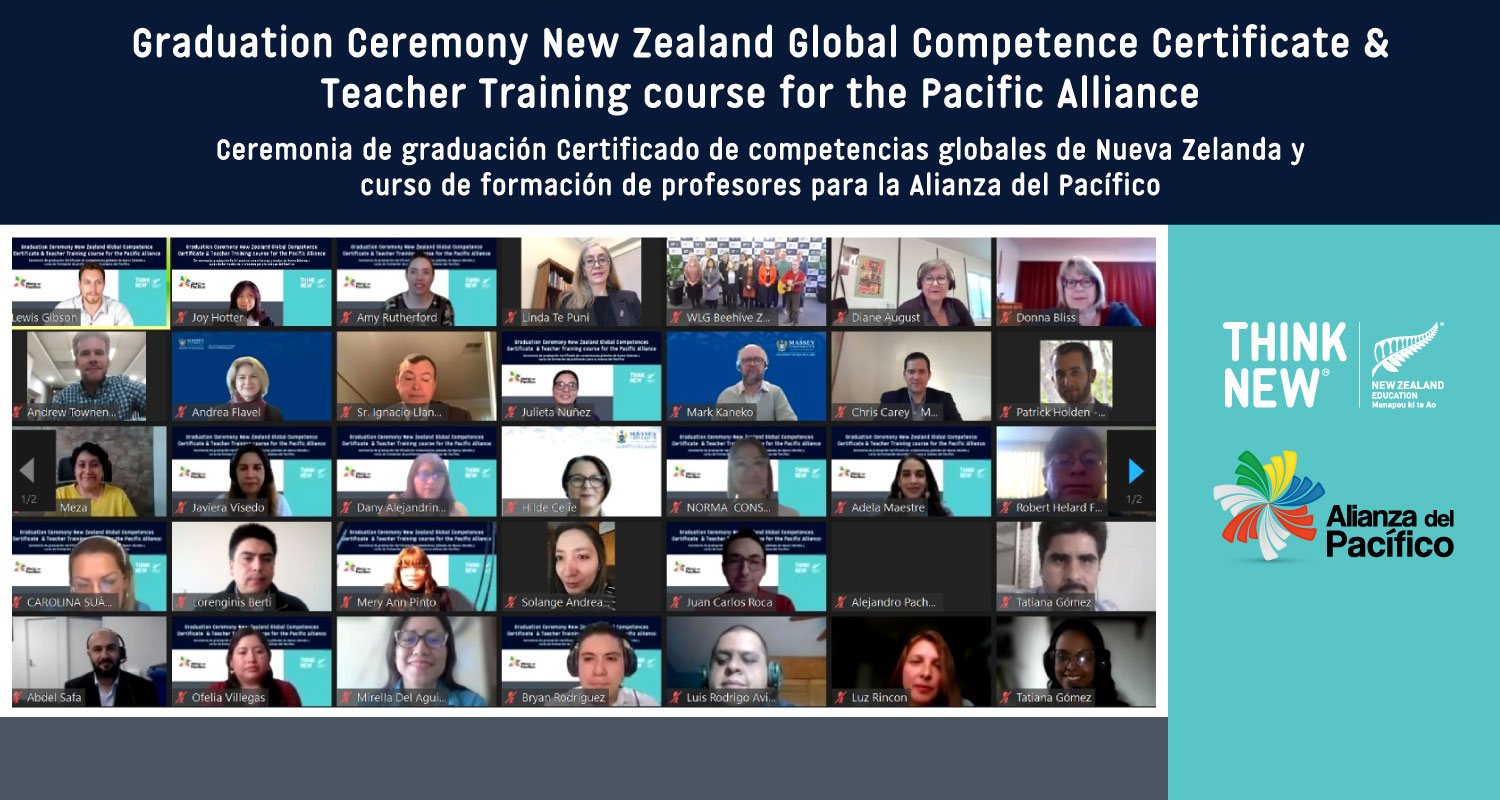 Tanto educadores de inglés como funcionarios gubernamentales de países miembros de la Alianza del Pacífico (bloque compuesto por Chile, Perú, Colombia y México), se graduaron del curso New Zealand Global Competence Certificate + Teacher Training, creado por la agencia Education New Zealand junto con la Red de Inglés (Riap).