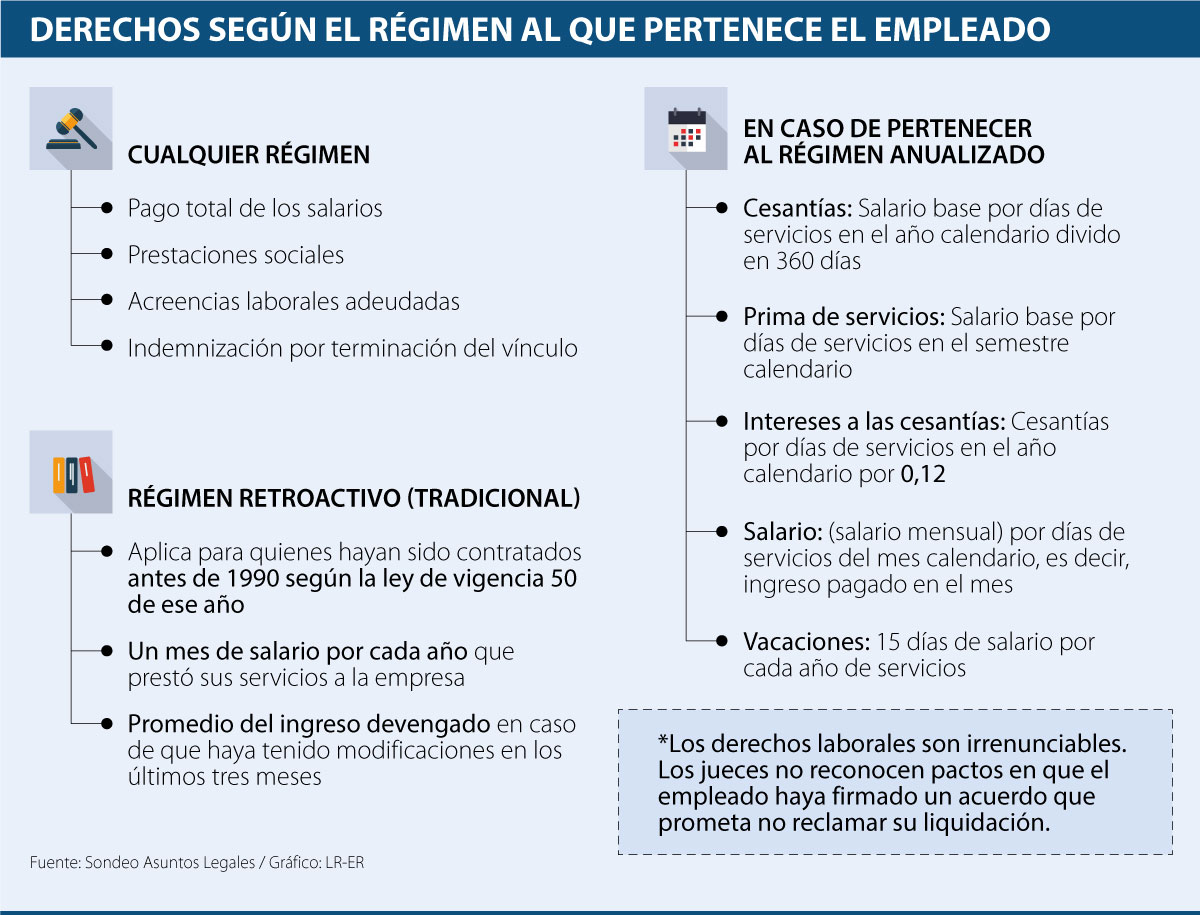 Es necesario recordar que sin importar el régimen ni las cesantías, las empresas deben hacer el pago total de los salarios, prestaciones sociales y demás acreencias laborales adeudadas o pendientes hasta su último día laborado o generado con ocasión de la terminación.