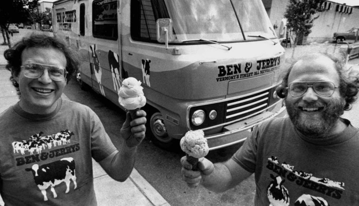 Ben Cohen y Jerry Greenfield, Ben&Jerry’s. Ben Cohen y Jerry Greenfield eran amigos de la infancia que en los años 60 y parte de los 70 vivieron como hippies. Después de tomar un curso por correspondencia de 5 dólares sobre cómo hacer helados, abrieron su heladería en una gasolinería abandonada en Burlington, Vermont.