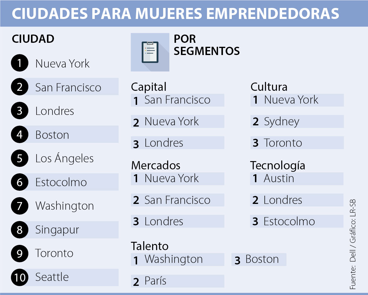 La compañía Dell desarrolló un estudio en aras de conocer las ciudades más favorables para el emprendimiento de mujeres en el mundo, descubriendo que Nueva York es la más indicada para que este asunto sea exitoso.