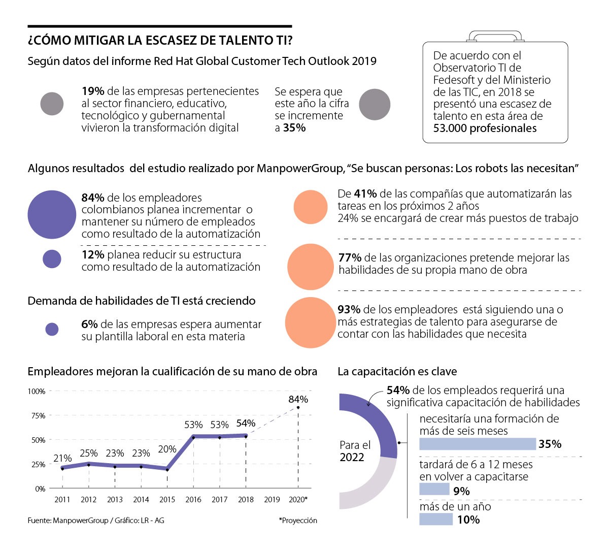 Pero hacer ese clic en la mente de los empleadores no es el único problema a enfrentar. Actualmente, el déficit de profesionales en el sector TI (tecnologías de la información) se ha convertido en una gran preocupación para la industria, pues según el Observatorio TI de Fedesoft y del Ministerio de las TIC, tan solo en 2018 se presentó una escasez de talento en esta área de 53.000 profesionales.