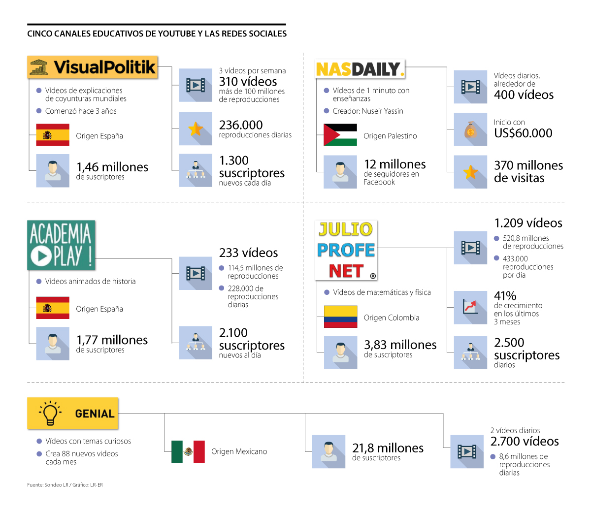 En la red se pueden encontrar canales que ayudan tanto a adultos como a jóvenes en asuntos escolares, también hay contenido para quienes quieran saber más de historia, política o economía.