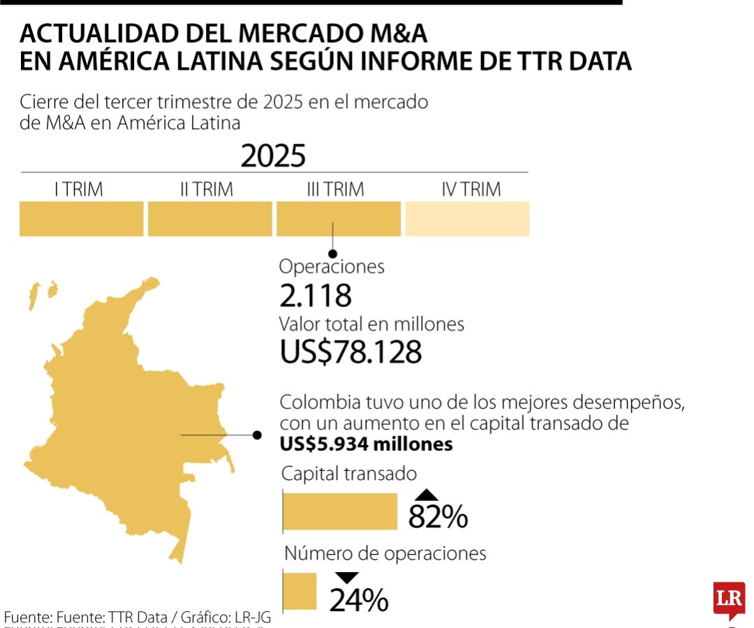 El último informe de TTR Data para el tercer trimestre reveló que Colombia disminuyó a 183 el número total de transacciones anunciadas y cerradas