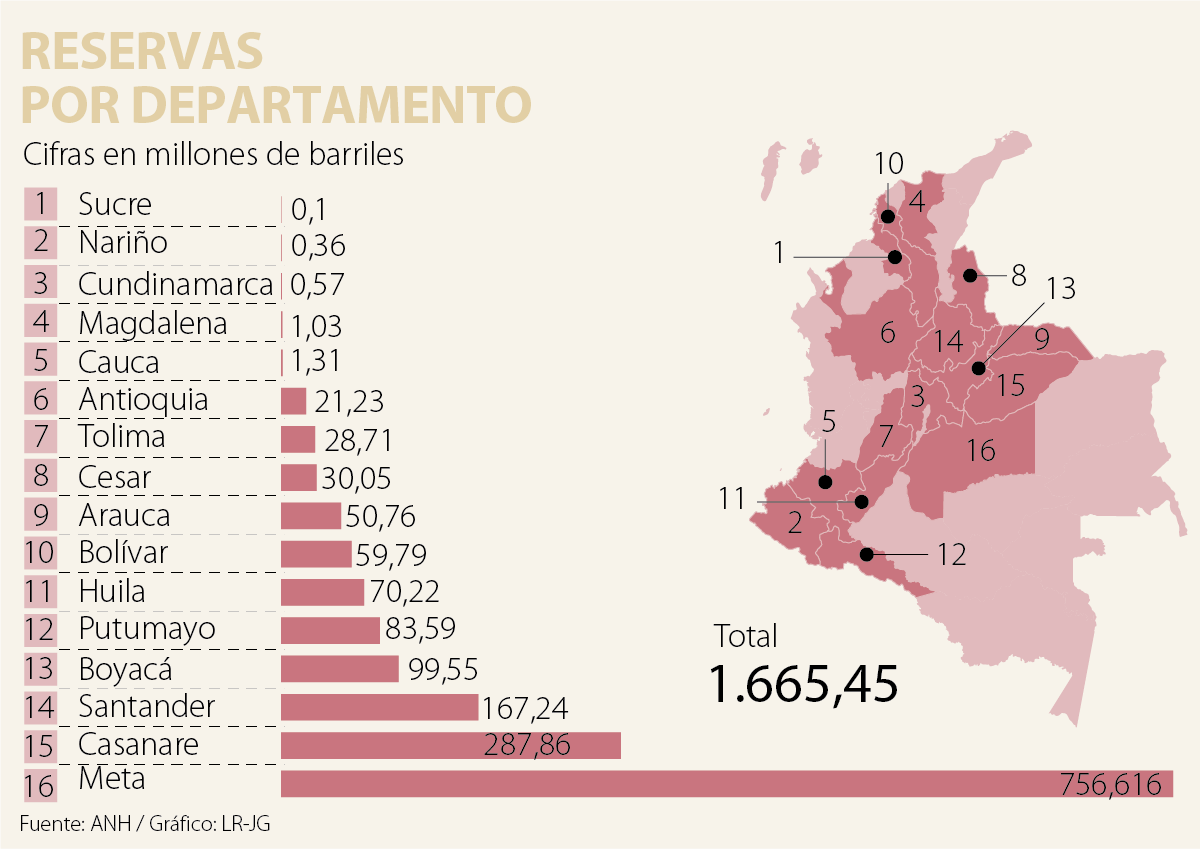 Como es bien sabido, las reservas de petróleo de Colombia vienen de capa caída. Si miramos los cuatro últimos años, observamos que se pasó 2.377 millones de barriles en 2012 y una relación reservas/producción de 6,9 años, a 2.445 millones en 2013 y una relación reservas/producción de 6,6 años, para 2014 bajaron hasta 2.308 millones y una relación reservas/producción de 6,4 años y sigue cayendo en 2015 hasta llegar a 2002 millones y una relación reservas/producción de 5,5 años. Y, para rematar, según informe reciente de la Agencia Nacional de Hidrocarburos, una vez más, cayeron 17% las reservas, esta vez para estacionarse, por debajo de la barrera psicológica de los 2.000 millones, en 1.665 millones de barriles y ya el horizonte de autoabastecimiento (coeficiente reservas/producción) se reduce a solo 5,1 años. Así es que a Colombia la ronda el fantasma de la pérdida de la autosuficiencia petrolera. De allí la premura con que se deberá de actuar para detener esta caída, con el fin de conjurar este riesgo que es inminente.