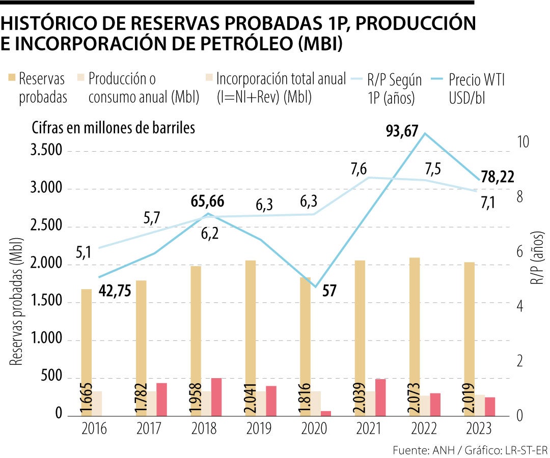 En el encabezado del boletín expedido por la ANH con motivo de su presentación se dice que “Colombia mantiene un nivel de reservas/producción de petróleo por encima de siete años”. Lo primero que llama la atención es que se afirme que se “mantiene” el nivel de las R/P de petróleo “por encima de siete años”, cuando lo relevante es que pasó de 7,5 años en 2023, de por sí preocupante, a solo 7,1 en 2024, al pasar sus reservas probadas de 2.073 millones de barriles a 2019, cifra esta que no es para celebrar, sino para lamentar.