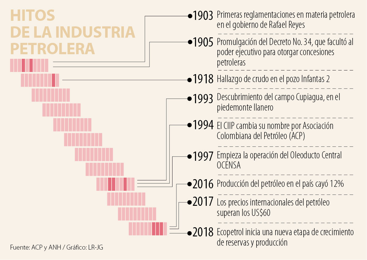 Justamente este domingo 29 de abril se cumplen exactamente 100 años desde el día cero del primer pozo descubridor de petróleo que se perforó en el territorio colombiano, más precisamente en un campo contiguo a El Centro (Barrancabermeja), el cual se bautizó con el nombre de Infantas 2, en honor a las dos princesas para entonces de España, la Madre patria. Con unas reservas de 800 millones barriles de crudo, su producción inicial fue de 42 barriles diarios y en su máximo esplendor, en 1939, llegó a producir 64.971 barriles/día. El Operador de este yacimiento fue la multinacional estadounidense Tropical Oil Company.
