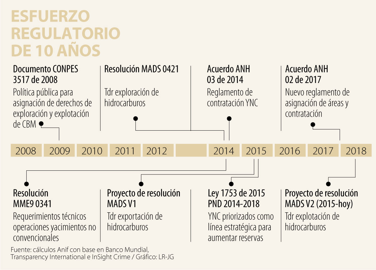 Con tal fin el país viene dando los pasos conducentes desde hace ocho años, mediante la gestión de conocimiento, a partir de la experiencia de otros países y se ha establecido la normatividad técnica, operativa y ambiental, a la cual se deberán ceñir las empresas que utilicen esta tecnología, empezando por Ecopetrol. Tales disposiciones propenden por la utilización de las mejores prácticas, con los más altos y exigentes estándares.