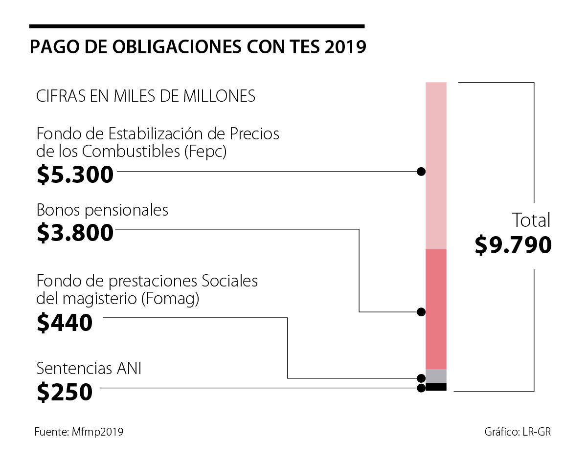 También se tiene previsto pagar con TES lo adeudado al magisterio de Colombia por concepto de mora, debido al no pago oportuno de las cesantías de los maestros causadas a diciembre de 2019, por valor de $1,1 billones. Se procederá por parte del Ministerio de Hacienda a emitir los TES por ese valor, los cuales se le entregarán a la Fiduprevisora, entidad fiduciaria que administra el Fondo Nacional de Prestaciones Sociales del Magisterio. Según el Decreto que para el efecto expidió el Ministerio de Hacienda este procedimiento no conlleva “operación presupuestal alguna y sólo debe presupuestarse para efectos del pago de intereses y la redención de los títulos” a su vencimiento.