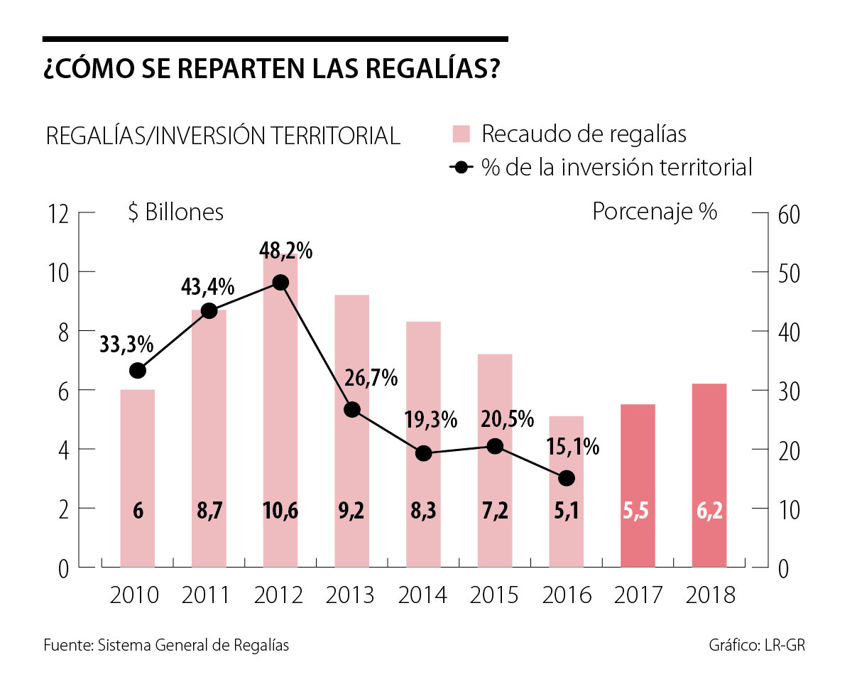 Ello afecta, en mayor o menor proporción, tanto a las regiones productoras como a las no productoras, tanto más en cuanto que las regalías son los únicos recursos ciertos con los que cuentan para financiar sus presupuestos de inversión, llegando a representar, en promedio, 16,5% de los ingresos de los departamentos y 7% de los ingresos de los municipios.