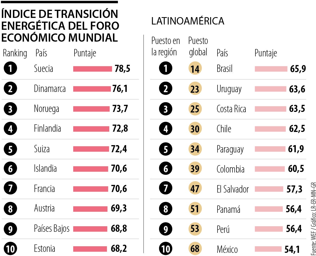 Ello explica el retroceso que ha llevado a Colombia a rezagarse: según el último reporte del Foro Económico Mundial (FEM) Colombia perdió 10 posiciones en el Índice de Desempeño de la Transición Energética entre 2021 y 2023, pasando del puesto 29 al 39 y después de secundar a Chile, que era el líder en Latinoamérica, Colombia ahora está de sexto.
