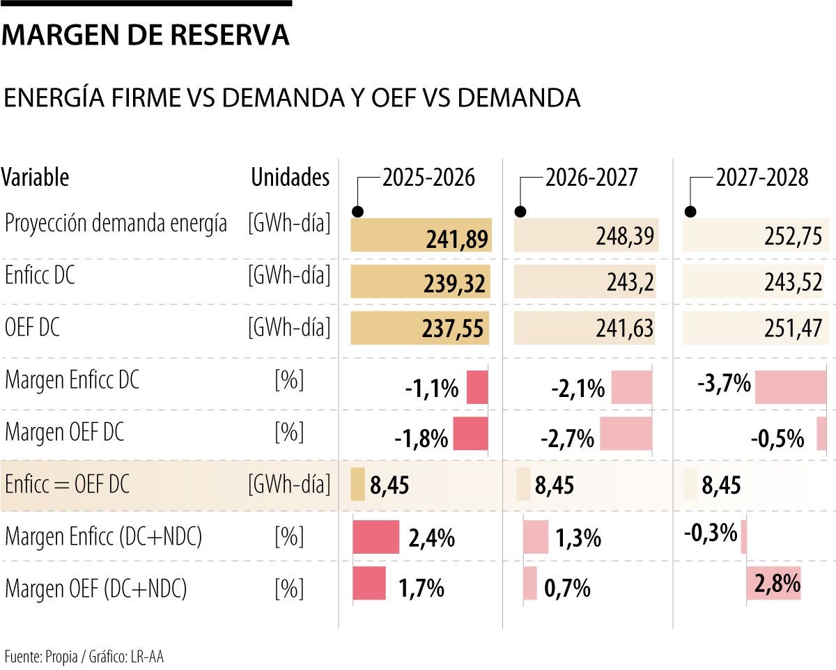 Ello se traduce en lo que denomina la presidenta de Asoenergía, Sandra Fonseca, en un “equilibrio inestable en el balance Oferta - demanda existente”, a tal punto que según la presidenta de Acolgen, Natalia Gutiérrez, “con base en las proyecciones de demanda anual de la Upme y las cifras de OEF publicadas por XM, se mantiene un déficit de energía firme negativo”.