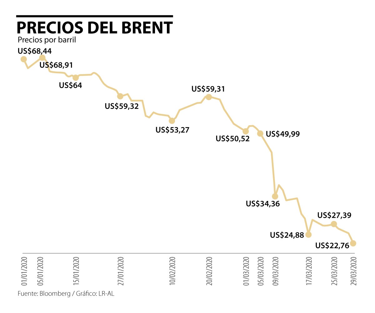 Pero, como por la Ley de Murphy todo aquello que anda mal es susceptible de empeorar, el desencuentro entre los jeques de Arabia Saudita, que lideran la Opep y Rusia, impidió que se extendiera el acuerdo alcanzado y desató una guerra de precios que ha puesto en jaque a los productores y exportadores de petróleo en todo el mundo. Los precios del crudo se deslizaron con tanta rapidez como si bajaran por un tobogán desde US$68,9 el barril de la referencia Brent, el 6 de enero de este año hasta US$22, su menor nivel desde noviembre de 2002. Aunque el precio repuntó hasta US$34 el barril, pero muchos lo interpretan como el rebote del gato muerto, que no revertirá la tendencia, habida cuenta que la demanda se ha reducido en 25 millones de barriles y los inventarios están al tope.