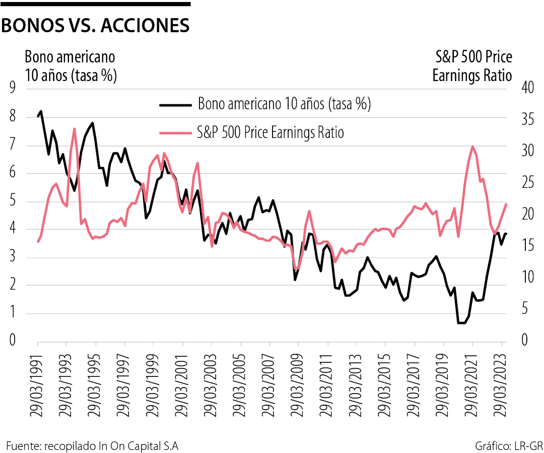 El retorno medio histórico del S&P 500 ha sido de 12% al año, pero con la economía mundial en proceso de desaceleración, muchos analistas no esperan que la Bolsa de EE.UU. consiga tan buenos retornos en los próximos trimestres. Los aumentos en las tasas de interés por parte de la Fed en Estados Unidos han provocado que el interés que ofrece la deuda del Tesoro americano supere 4% en casi todos los plazos. En cambio, la rentabilidad potencial del S&P 500, el índice de referencia en EE.UU., es de solo 5,3% en estos momentos -el margen de riesgo más bajo en 16 años para invertir en acciones frente a bonos-.