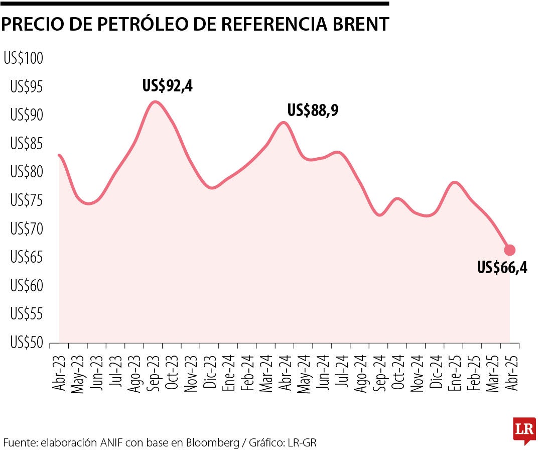 De forma similar, el precio del petróleo brent ha mostrado una tendencia a la baja en los últimos meses. En abril se observó una caída mensual de 7,3%, lo que representa el tercer mes consecutivo de disminución en su cotización (ver gráfico). No obstante, en este contexto de precios a la baja, la Opep mantiene su proyección de crecimiento en la demanda global de petróleo para 2025 en 1,3 millones de barriles diarios, lo cual refleja una expectativa de recuperación del consumo hacia la segunda mitad del año.