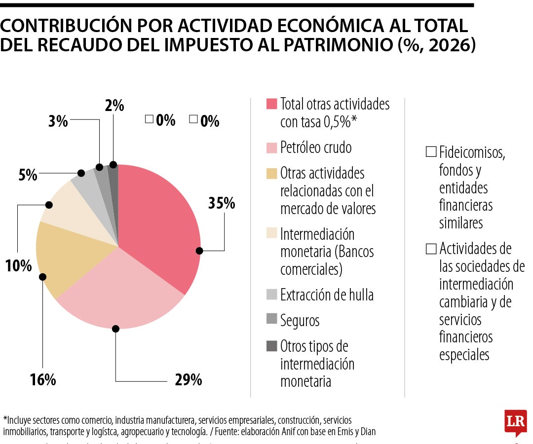 Con su expedición, el gravamen aplica a sociedades con patrimonio líquido igual o superior a 200.000 UVT ($10.475 millones), con una tarifa general de 0,5%. No obstante, se fija una tarifa diferencial de 1,6% para ciertos sectores, en particular el financiero y el extractivo. Adicionalmente, se contemplan exclusiones específicas, como las empresas del sector salud y las empresas de servicios públicos domiciliarios en zonas afectadas, las cuales no estarán sujetas al impuesto.
