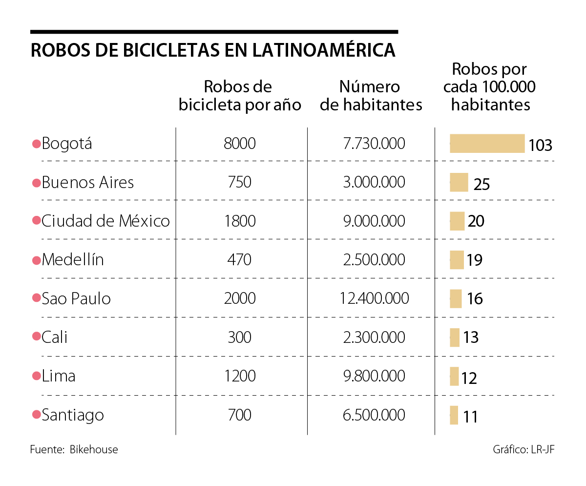 5. El robo de bicicletas, en Colombia, es excarcelable, a no ser de que se involucren lesiones personales o la muerte. Los ladrones y las bandas que operan el negocio, desde el hurto hasta la venta, son libres para rodar en estas máquinas.
