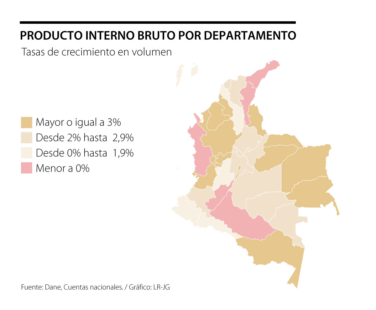 Gracias a sus esfuerzos, los signos vitales de la economía regional son positivos, como pocas veces en la historia. De acuerdo con las Cuentas Departamentales del Dane, entre 2017 y 2018, veintitrés departamentos mostraron un crecimiento en su Producto Interno Bruto, y en dos disminuyó su caída. Esta cifra contrasta con la diferencia entre 2016 y 2017, cuando sólo se presentó un crecimiento del PIB en seis departamentos.