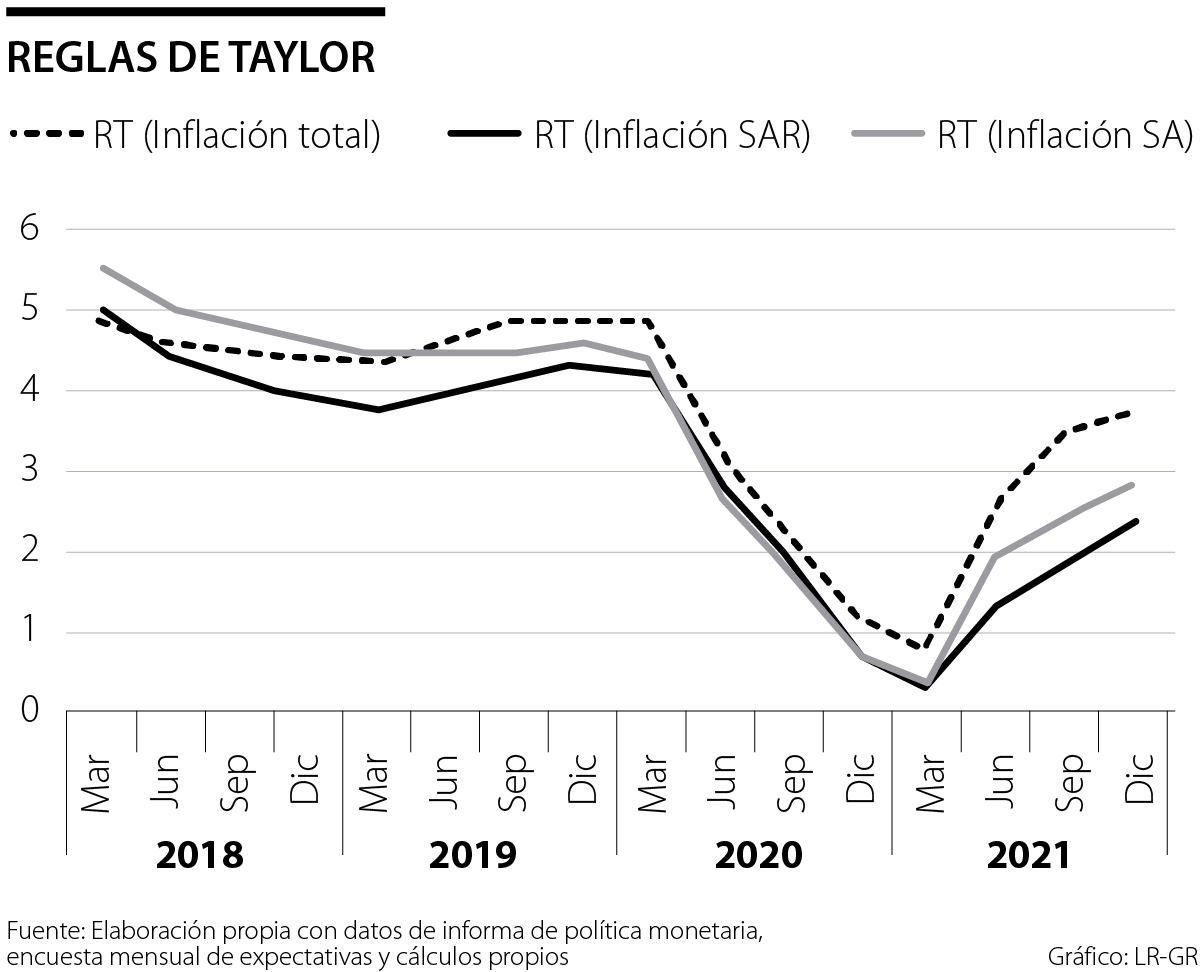 También es notorio que durante la crisis del covid-19 la política monetaria del Banco de la República fue contractiva a pesar de que redujo las tasas de interés. Esto se debe a que, si bien la tasa de interés se encuentra en mínimos históricos, las reglas de Taylor sugieren que se debieron haber bajado más. Esto ultimo no es sorprendente. Si se lee la prensa económica de 2020 se puede apreciar como diversos analistas hacían un llamado a tener una política monetaria más expansiva. Adicionalmente, algunos analistas sugirieron el uso de políticas monetarias no convencionales como la expansión cuantitativa e incluso emisión para financiar gasto del gobierno. Si bien en retrospectiva algunas de estas medidas parecen hoy extremas, innecesarias e incluso peligrosas, la evidencia sugeriría que el Banco de la República se quedo corto durante esta crisis. Por lo anterior, una evaluación más rigurosa del rol de la política monetaria durante la crisis de 2020 se hace necesaria. También es cierto que se deben evitar ciertos sesgos a la hora de evaluar dicho rol, dado el alto nivel de incertidumbre que se vivió durante 2020.