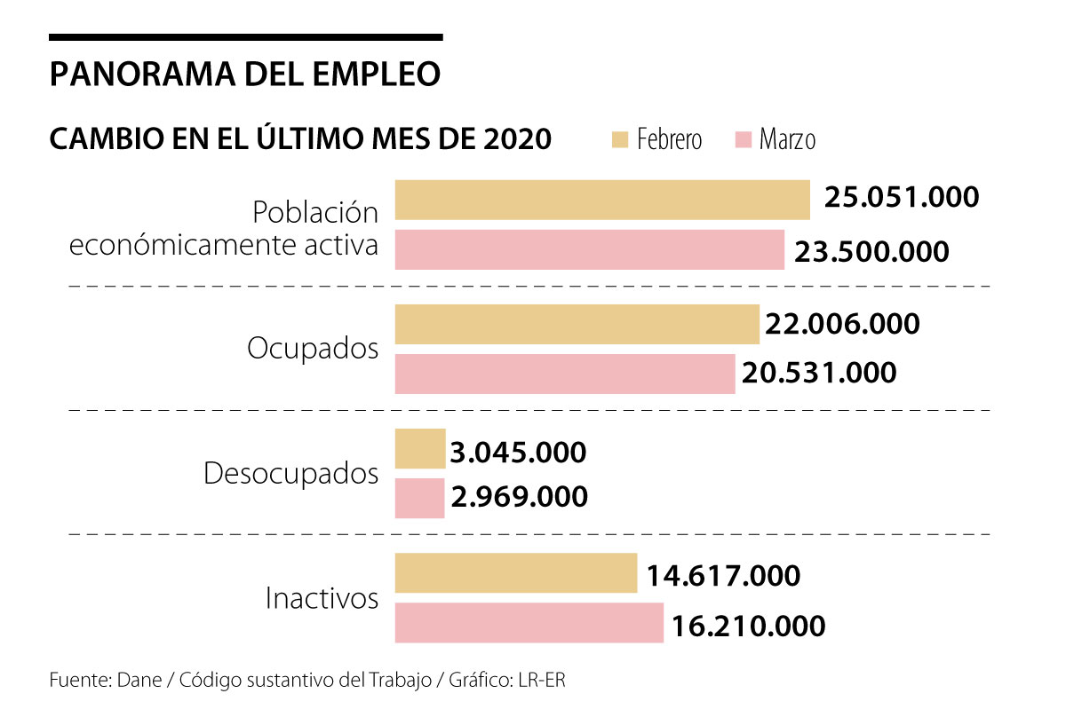 Después de ocho días de aislamiento, entre el 23 y el 31 de marzo, el desempleo aumentó de 10,8% a 12,6% comparado con el mismo mes del año anterior. Es decir, se sumaron 287.000 desempleados más. Pero las personas que pasaron a no buscar empleo son alrededor de 1.500.000. El efecto puede ser mayor.