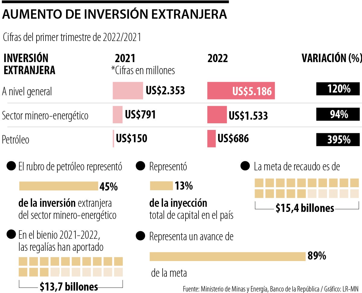 Los resultados son sobresalientes. Entre agosto de 2018 y el primer trimestre de 2022, la inversión extranjera directa según el Banco de la República suma US$41.487 millones, y de este monto 77% se dirigió a sectores no minero energéticos, lo que ratifica el crecimiento y diversificación de los proyectos de capital internacional en nuestro territorio.