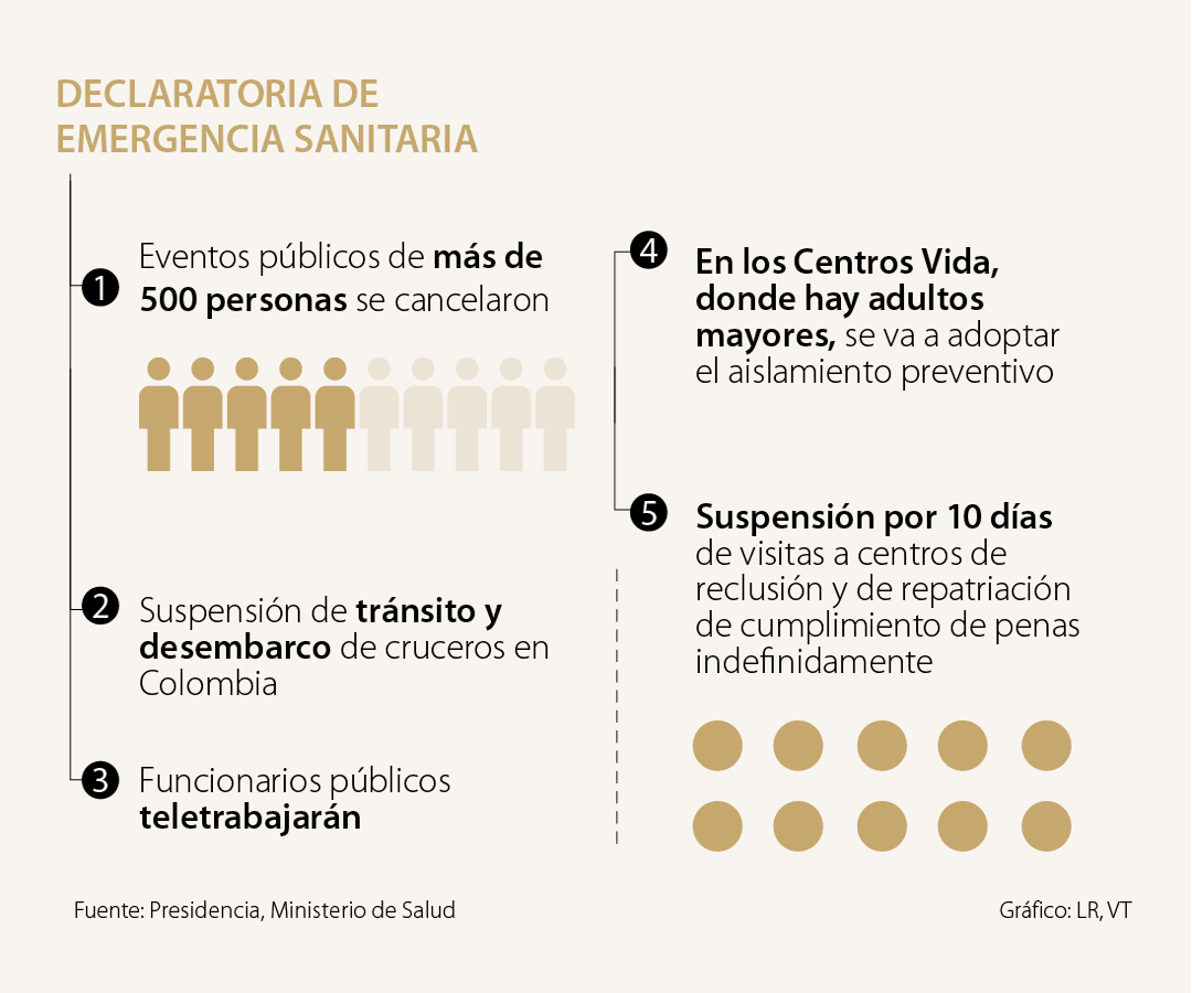 De ahí el aislamiento de ciudades y regiones enteras, por ejemplo, en China e Italia; la obligatoriedad del aislamiento para quienes hayan adquirido el virus; la suspensión de eventos masivos; la realización de torneos deportivos sin público; la suspensión de clases en colegios y universidades; el veto de vuelos internacionales procedentes de zonas de alto riesgo; la suspensión de los sistemas de transporte masivo o, en los casos en los que aún funcionan, su desinfección varias veces a lo largo del día (no solo en la noche como hace Transmilenio), y sigue un largo etcétera.