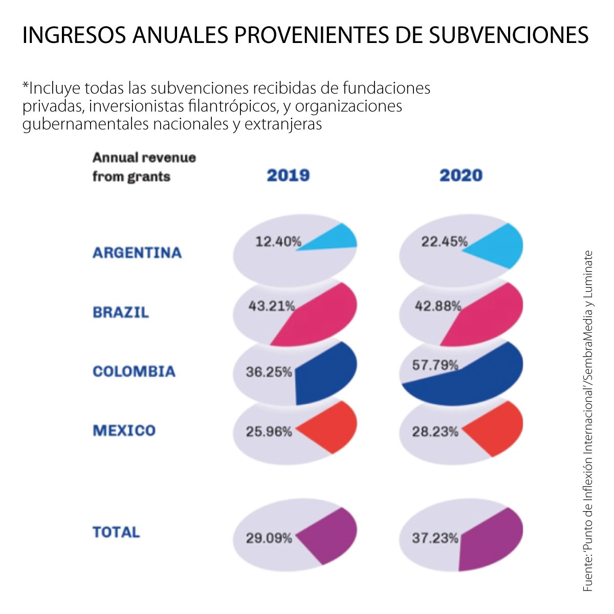 “En conversaciones privadas, nos dijeron que a los donantes y fundaciones les preocupaba cada vez más que los medios independientes están dependiendo demasiado de las subvenciones, y nosotros compartimos esa preocupación. No obstante, hay razones para creer que estos emprendimientos digitales han podido soportar la tormenta durante la ‘caída pandémica’ gracias al aumento de donaciones e inversiones filantrópicas”, dice el reporte.