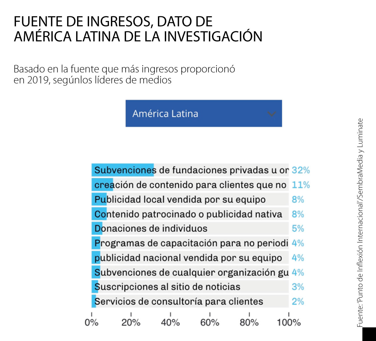Esta dependencia preocupa, pero al mismo tiempo explica cómo esos nativos digitales lograron sobrevivir durante la pandemia, pues no dependían tanto de la pauta publicitaria, que se desplomó castigando en especial a los denominados medios tradicionales.